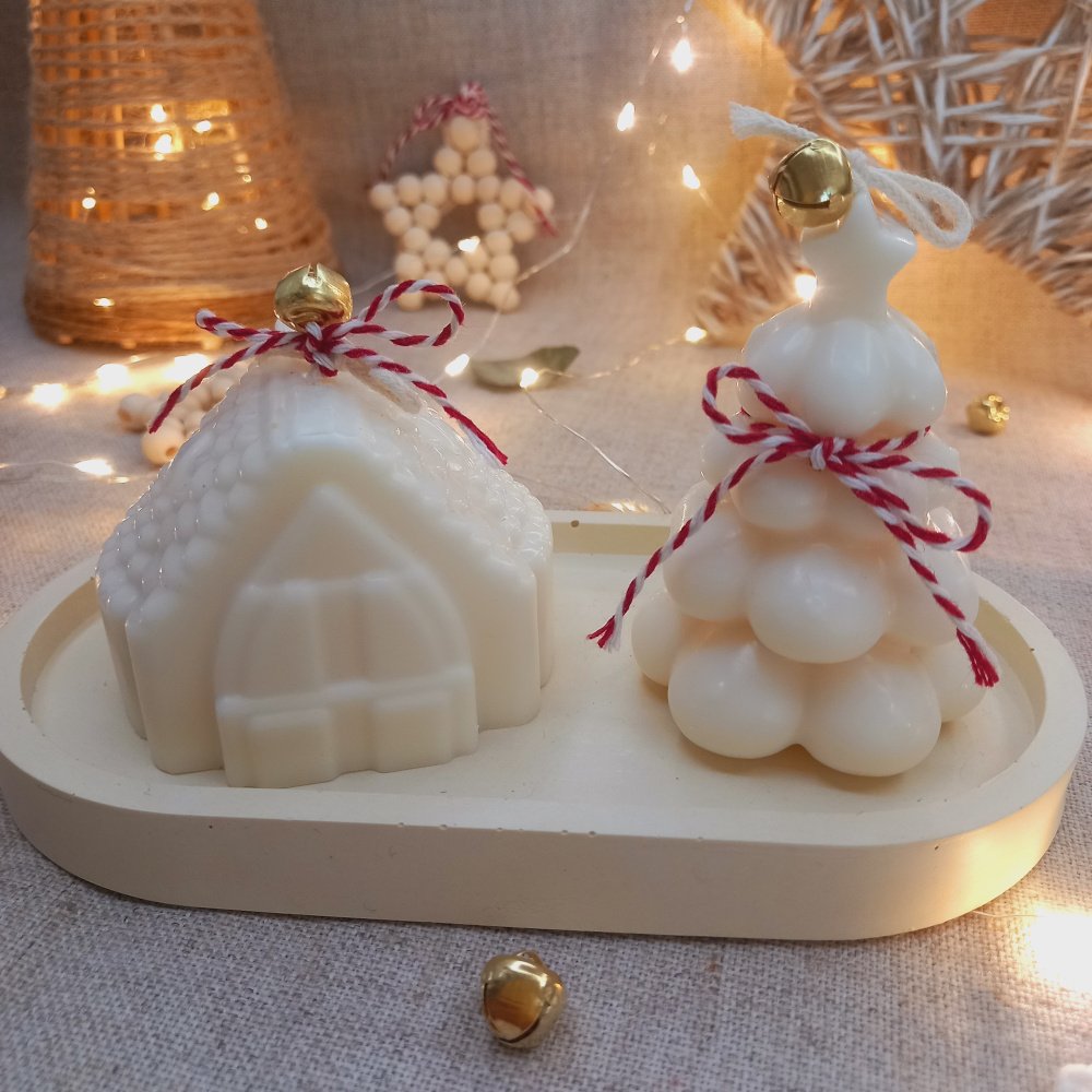 Conjunto Natalino – Velas decorativas e Bandeja em Ecomármore
